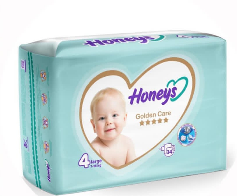پوشک بچه هانیز سایز ۴ بسته ۳۴ عددی