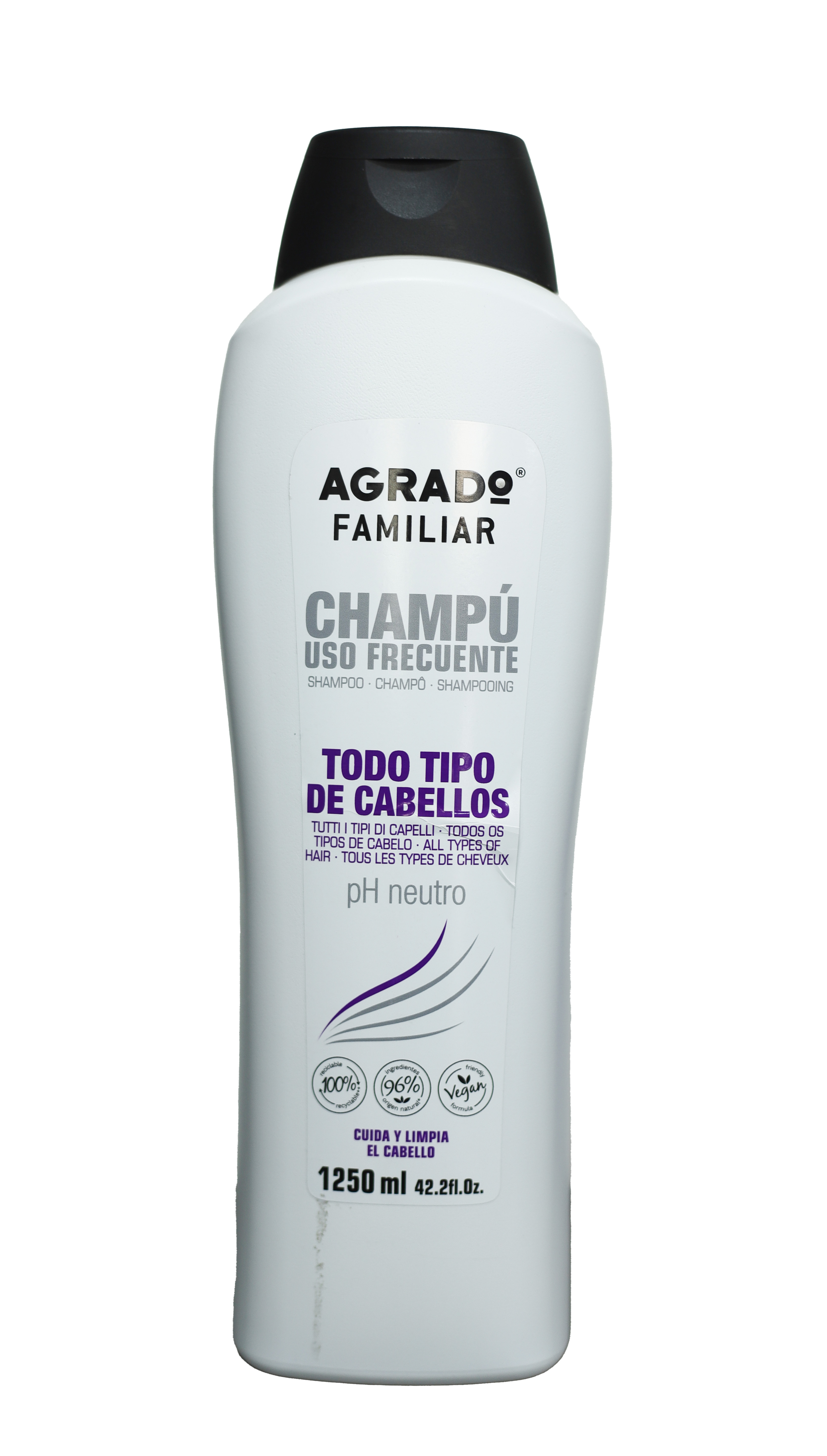 شامپو وگان روزانه فامیلی آگرادو اسپانیایی 1250 میل برای انواع مو