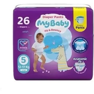 پوشک بچه مای بیبی شورتی (کانال دار) سایز ۵ بسته ۲۶ عددی