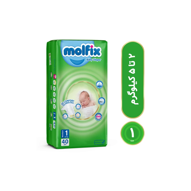 پوشک بچه مولفیکس سایز ۱ بسته ۴۰ عددی