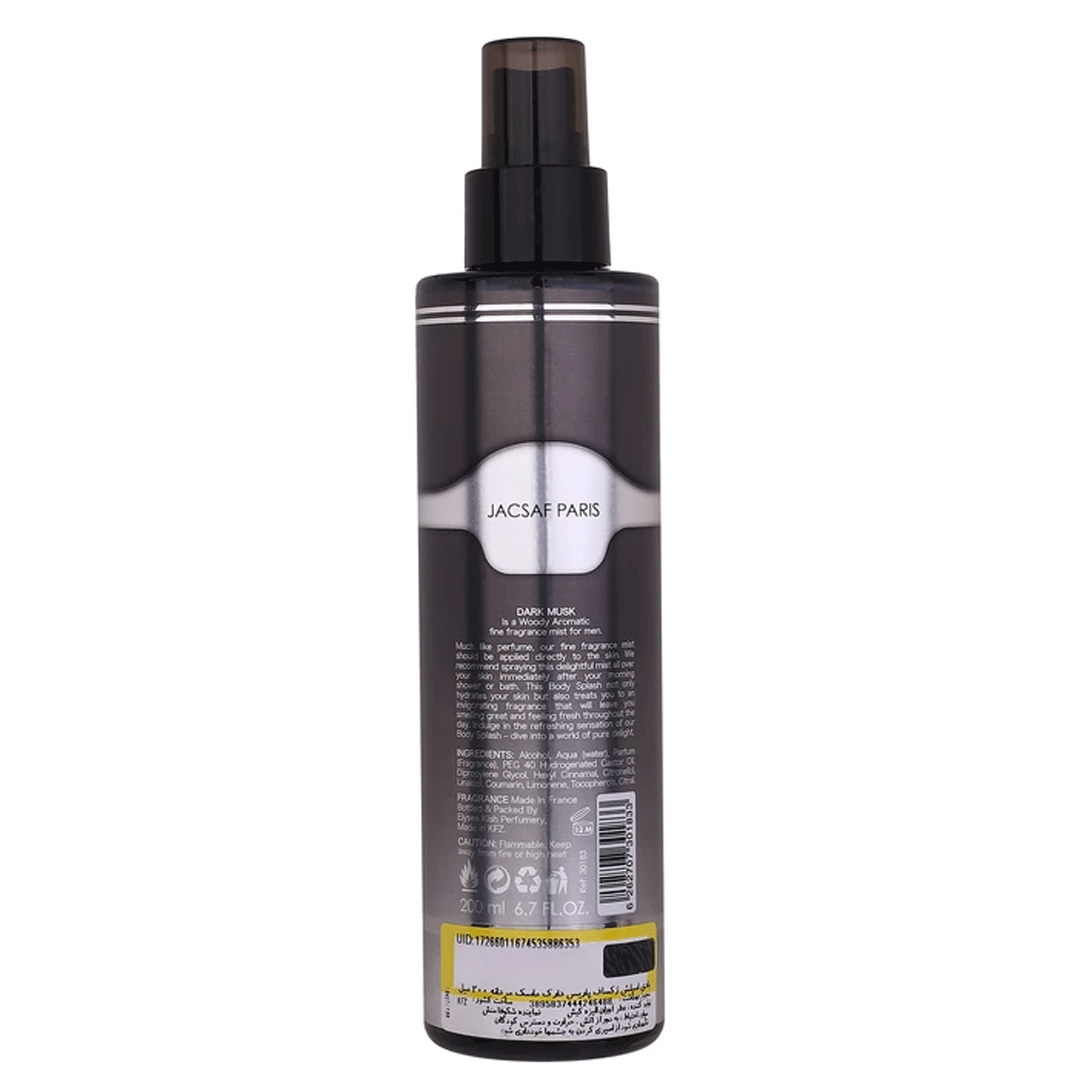 بادی اسپلش مردانه ژک ساف مدل دارک ماسک حجم 200 ميلی لیتر، محصولی با رایحه گرم و میوهای برای آقایان است. این بادی اسپلش فاقد الکل، با ماندگاری متوسط و مناسب استفاده روزانه است.